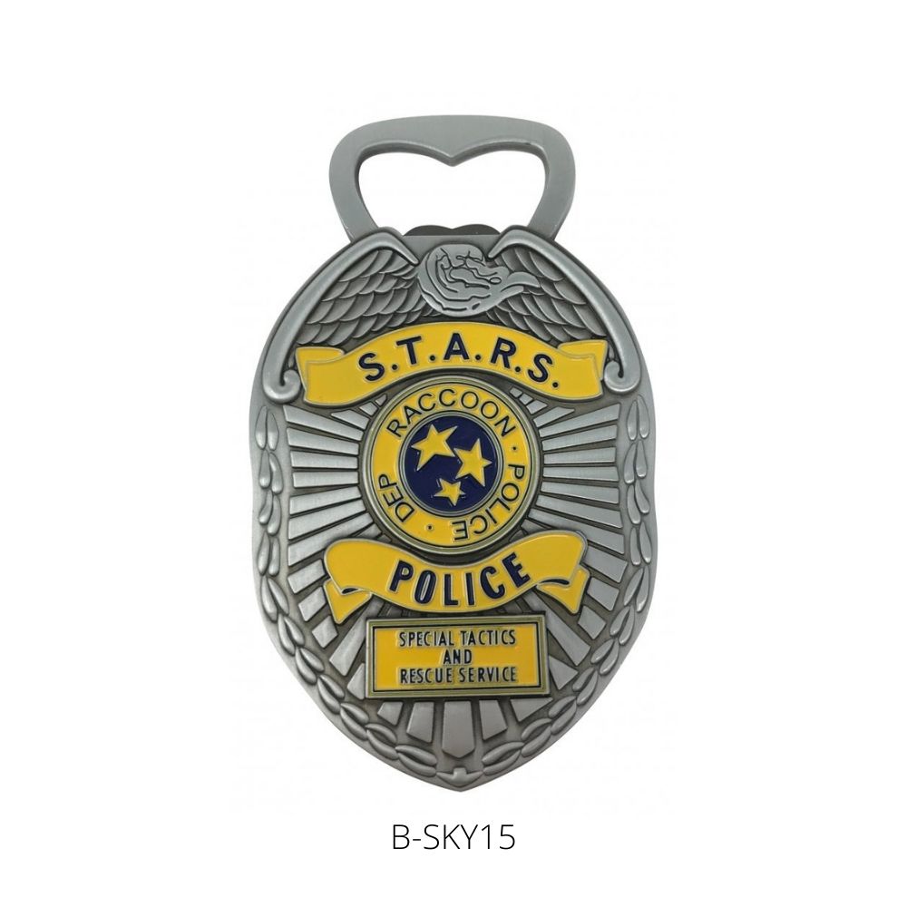 Premium Fanattik metal bottle opener replica of the S.T.A.R.S Police badge from the game, magnets on the reverse for easy storage on fridge door after use. PO Close Date: 06/04/2022